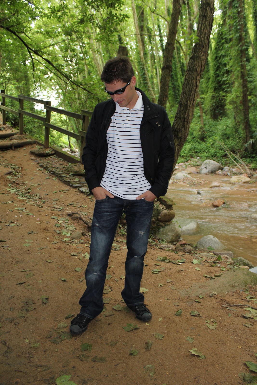En este caso como el polo es de manga corta y el atardecer no es aún muy cálido, lo hemos combinado con una cazadora negra de G-STAR RAW.