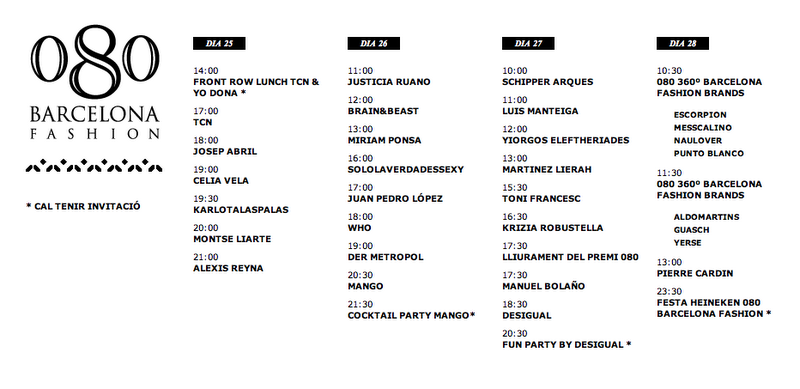 El 080 Barcelona Fashion se celebra del miércoles 25, al sábado 28. Y en esta edición, la organización ha elegido el "Palau del Rey" del barrio gótico, como epicentro de la feria. Un conjunto arquitectónico majestuoso, que acogerá las nuevas tendencias de grandes diseñadores y marcas, haciéndonos vivir la moda en su plenitud. TCN, Josep Abril, Mango, Miriam Ponsa, Desigual, Messcalino...
