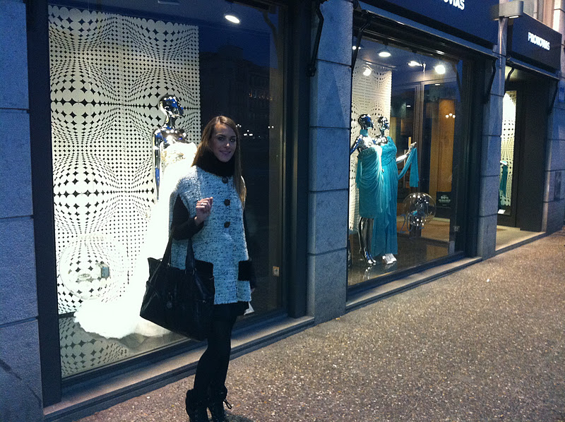 Y para ese día elegí un vestido con cuello y sin mangas de CUSTO, botines GUESS, bolso CK y una capa diseñada y realizada by my mum!!