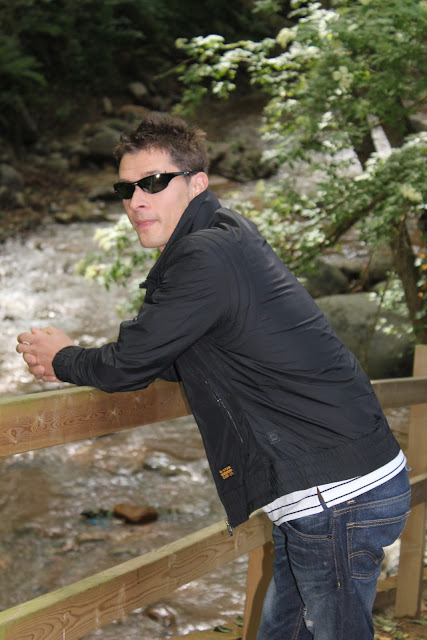 En este caso como el polo es de manga corta y el atardecer no es aún muy cálido, lo hemos combinado con una cazadora negra de G-STAR RAW.