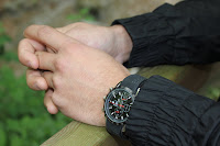 - gafas de sol de pasta OAKLEY - reloj TAG HEUER CARRERA con correa de cauchu negra - cinturón REPLAY de piel marrón oscura - zapatillas en negro y punta de goma, también de REPLAY-